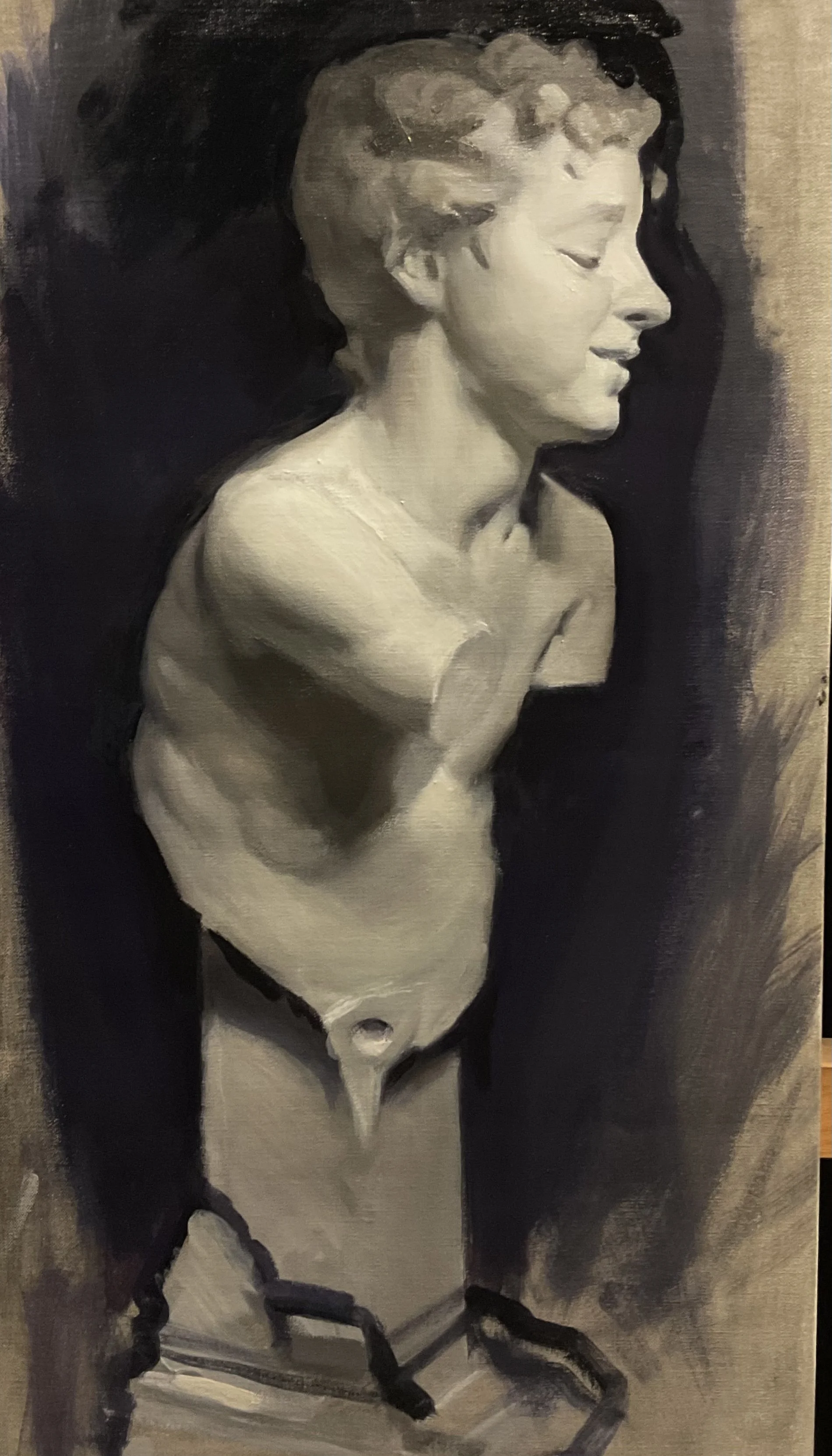 “Studie af gipsbyste af ung dreng”, olie på lærred, 2022